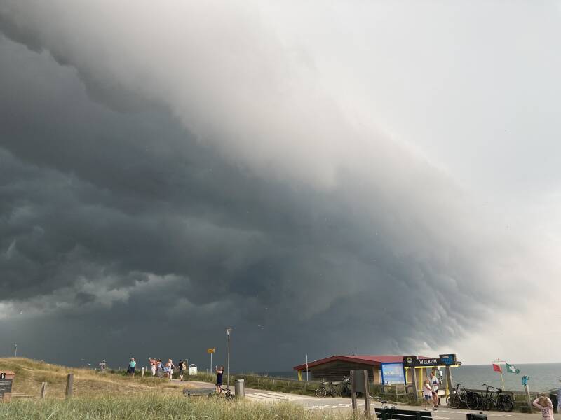 Een prachtige 'whales mouth' wolk trok snel Nederland binnen en zorgde voor een prachtig spektakel. Bemerk de randverschijnselen zoals de talloze meeuwen. Hieronder een paar beelden en een video.
